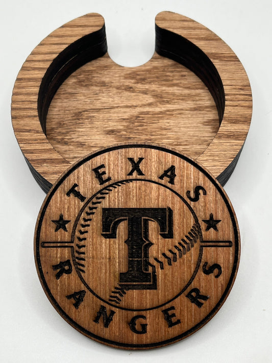 Texas Rangers Coasters, Laser Engraved, Stained & Sealed Coasters, Holder, Game Day, Unique Gift, Wood, Handcrafted