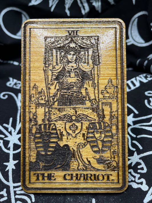 The Chariot Tarot Card | Laser Engraved Wooden Card | Major Arcana Gift