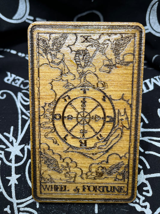 Wheel of Fortune Tarot Card | Laser Engraved Wooden Card | Major Arcana Gift