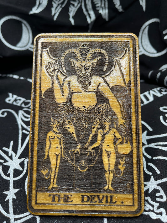 The Devil Tarot Card | Laser Engraved Wooden Card | Major Arcana Gift