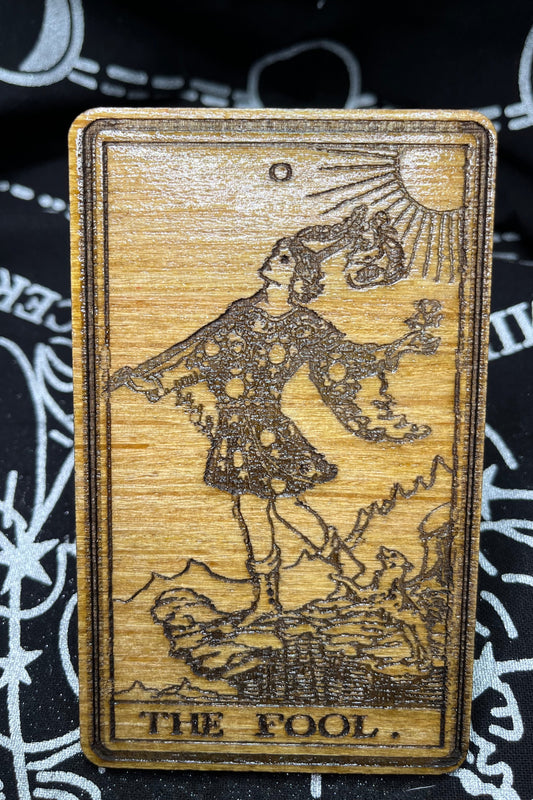 Wooden Tarot Card (The Fool) Laser Engraved, Stained & Sealed High-Quality Wooden Card