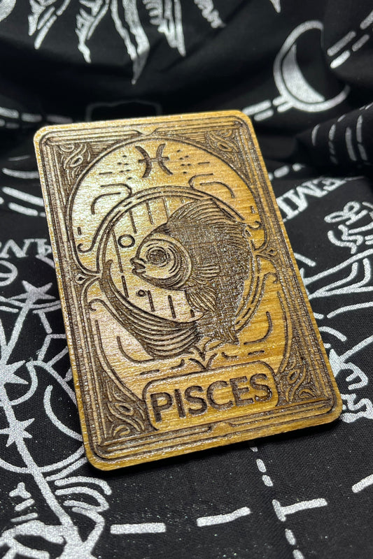 Wooden Zodiac Card (Pisces) Laser Engraved Wooden Card, Stained & Sealed for Durability