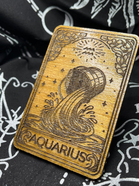 Aquarius Zodiac Card | Laser Engraved Wooden Card | Zodiac Gift